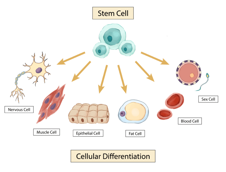 Research shows performing a 72 hour fast can help your body release stem cells into the blood stream, identify worn-down white blood cells and make new ones to replace them. If you’re not familiar with stem cells, they can go to any injured body part and repair it! You can think of stem cells like the base model; they have the ability to turn into any one of these cells below. See the image.